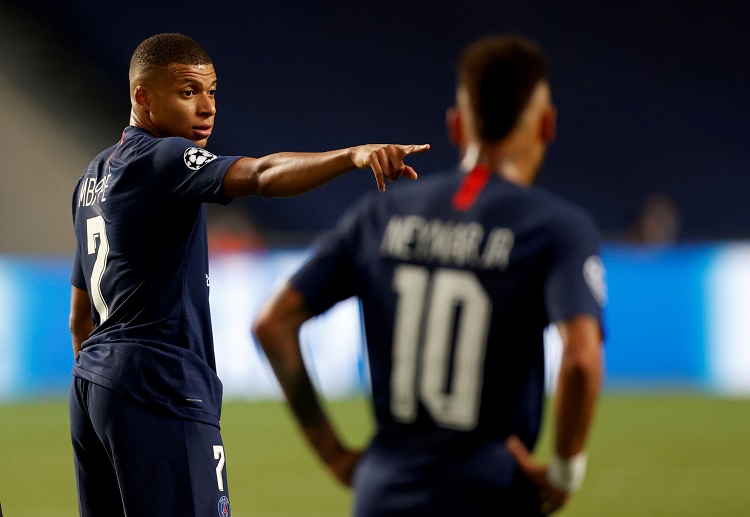 Kylian Mbappe with Neymar during PSG’s Champions League clash against Bayern Munich