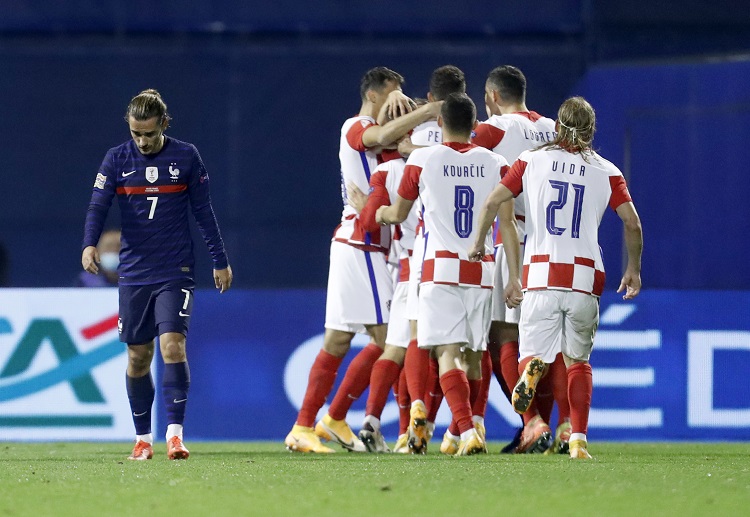 ออกสตาร์ทเกม เกมลีกลูกหนังยุโรป มาได้ 8 นาที ฝรั่งเศส มาได้ประตูออกนำเร็ว เมนดี้ เปิดบอลที่สุดเส้นหลัง กองหลังโครเอเชีย สกัดบิลไม่ดีมาเข้ามา กรีซมันน์ ได้ตั้งป้อมซัดข้อเสียบใต้คานเข้าประตูไปพาฝรั่งเศสนำ 1-0